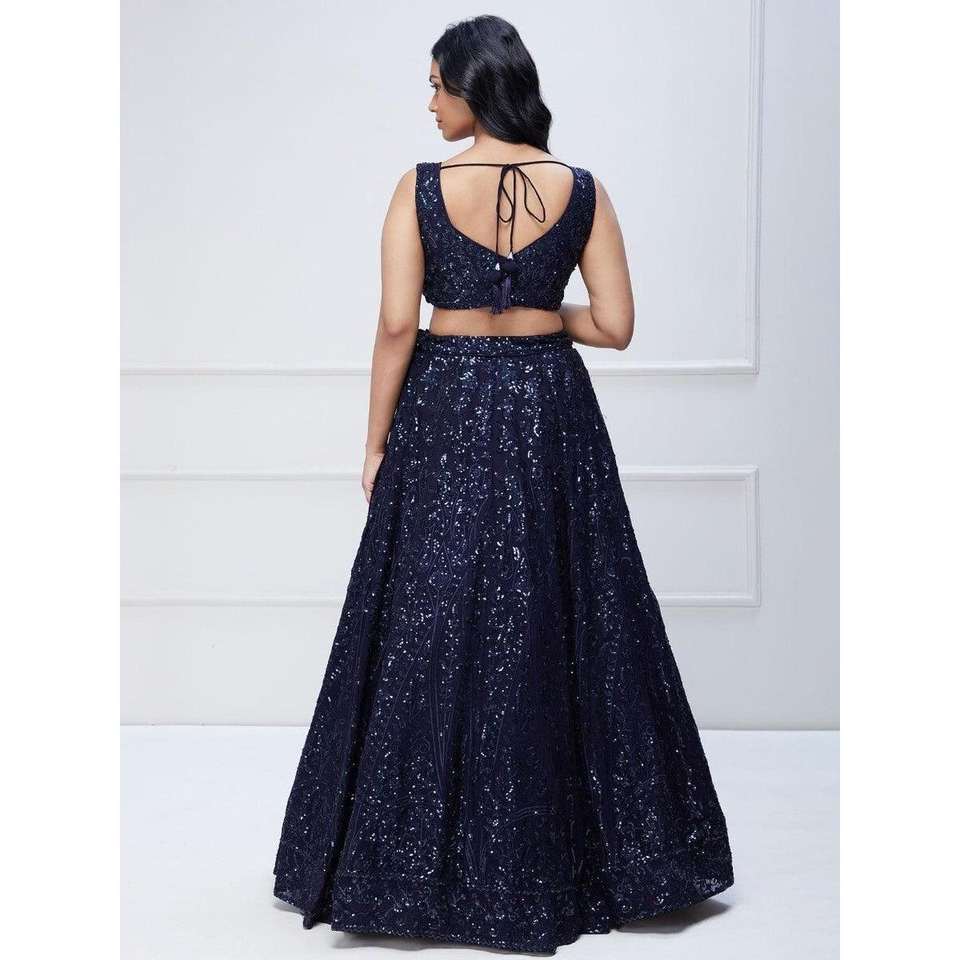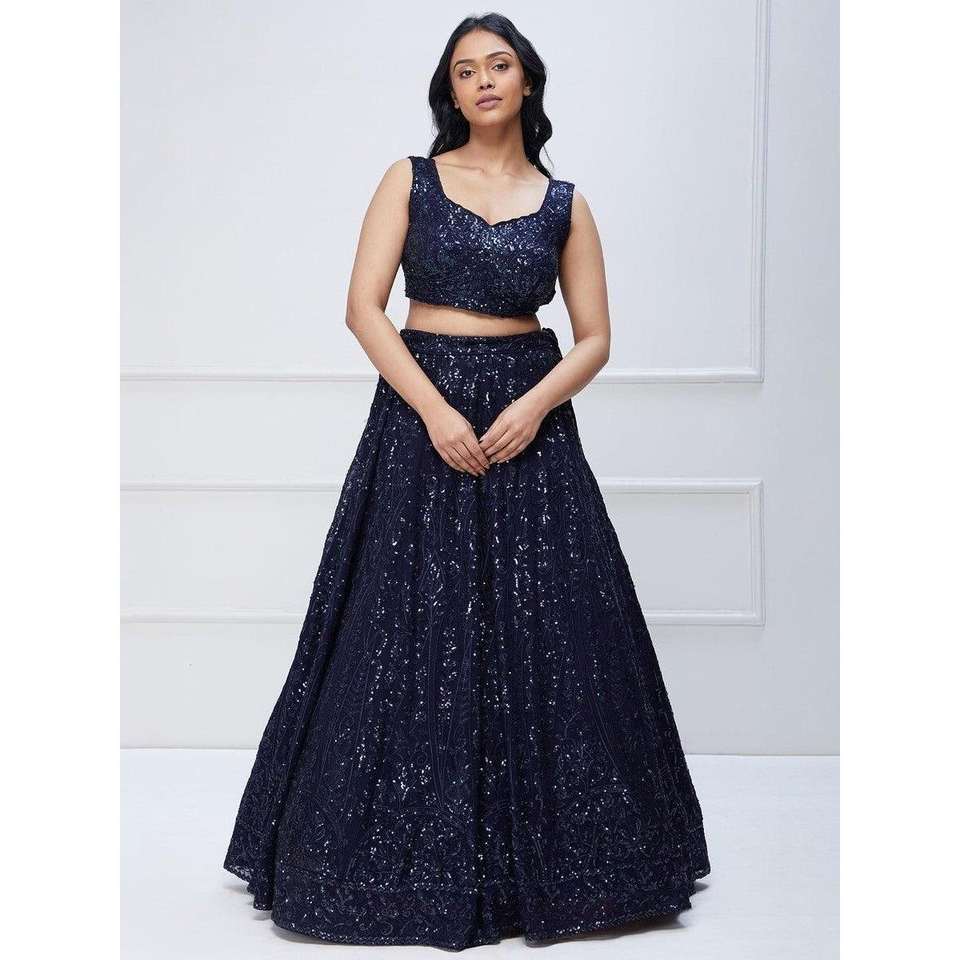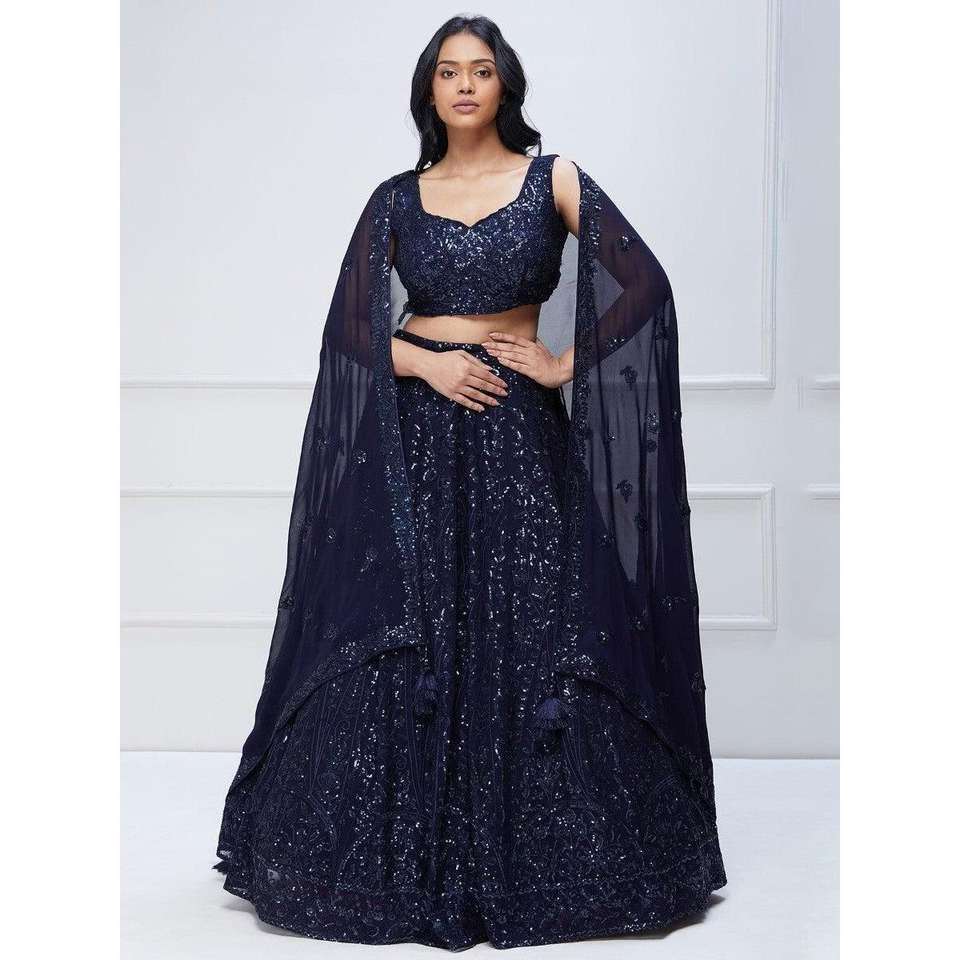 Lovely Navy Blue Sequins Georgette Engagement Wear Lehenga Choli