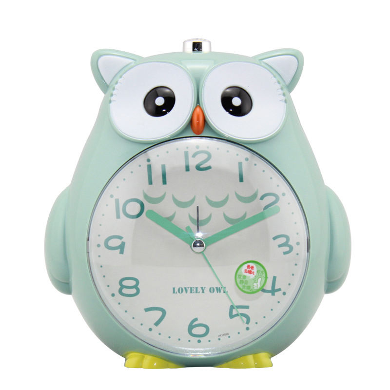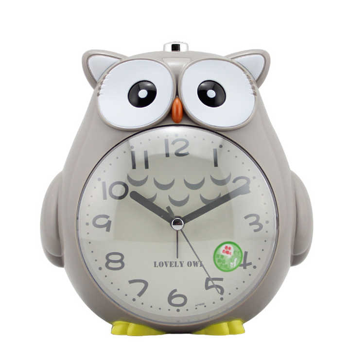 Jolie horloge de table en quartz en forme de hibou avec mélodie et alarme sonore, lumière et son lumineux # 19090