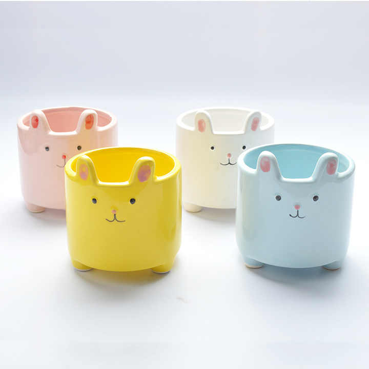 Pot de fleurs en céramique créatif en forme de lapin mignon, pot de plante succulente, décoration de jardin, mini bassin à fleurs pour le bureau