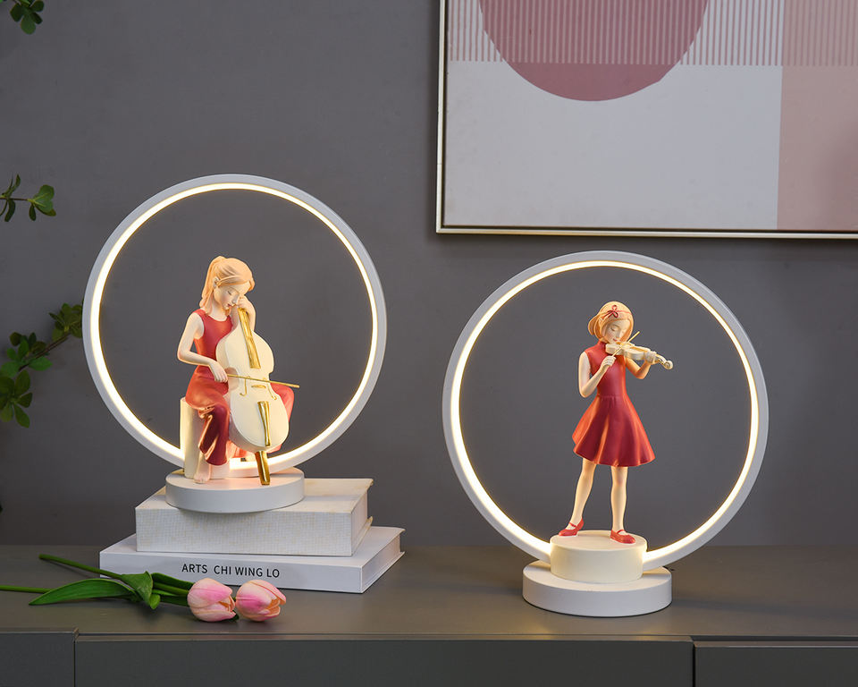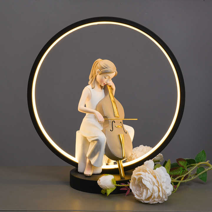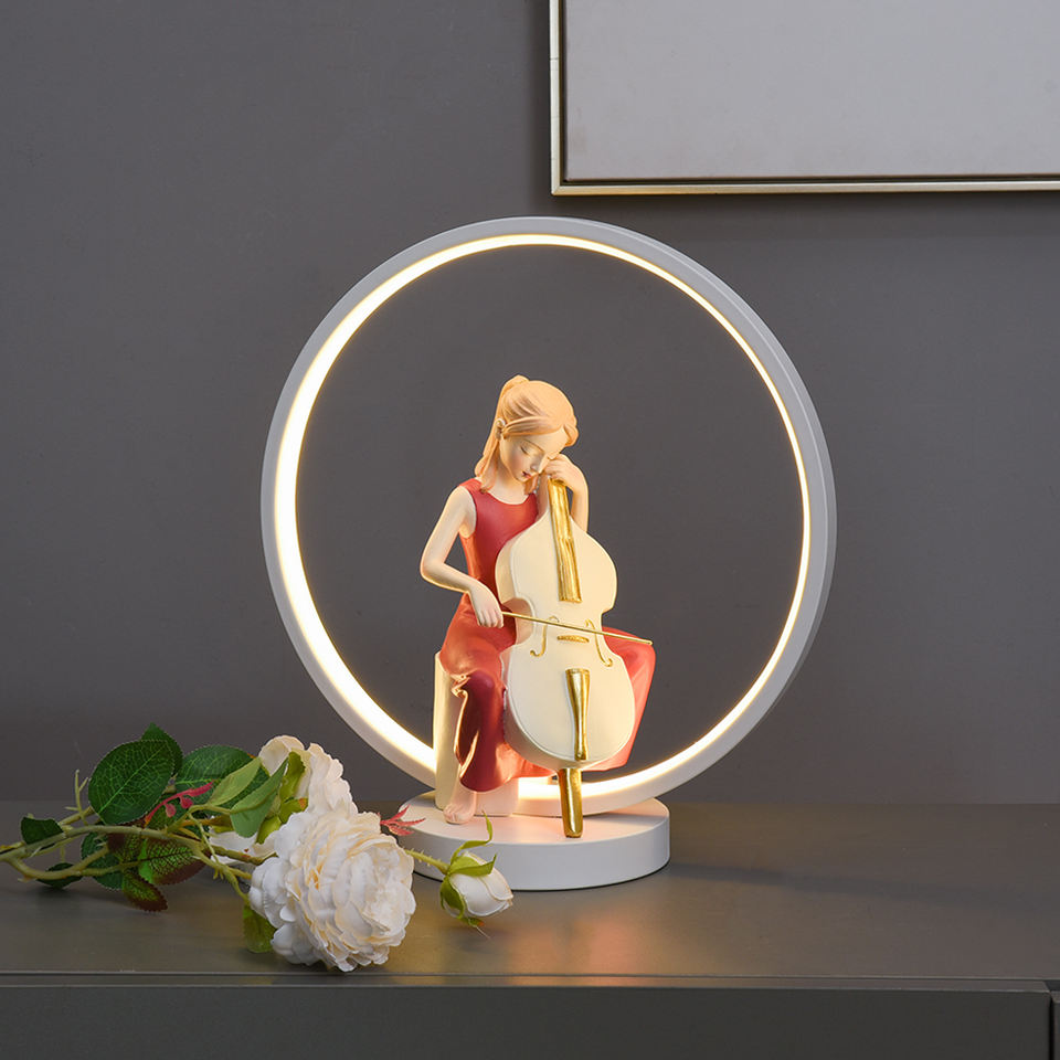 Belle chambre Table intérieur décoration de la maison nordique chambre veilleuse violoncelle fille Statue