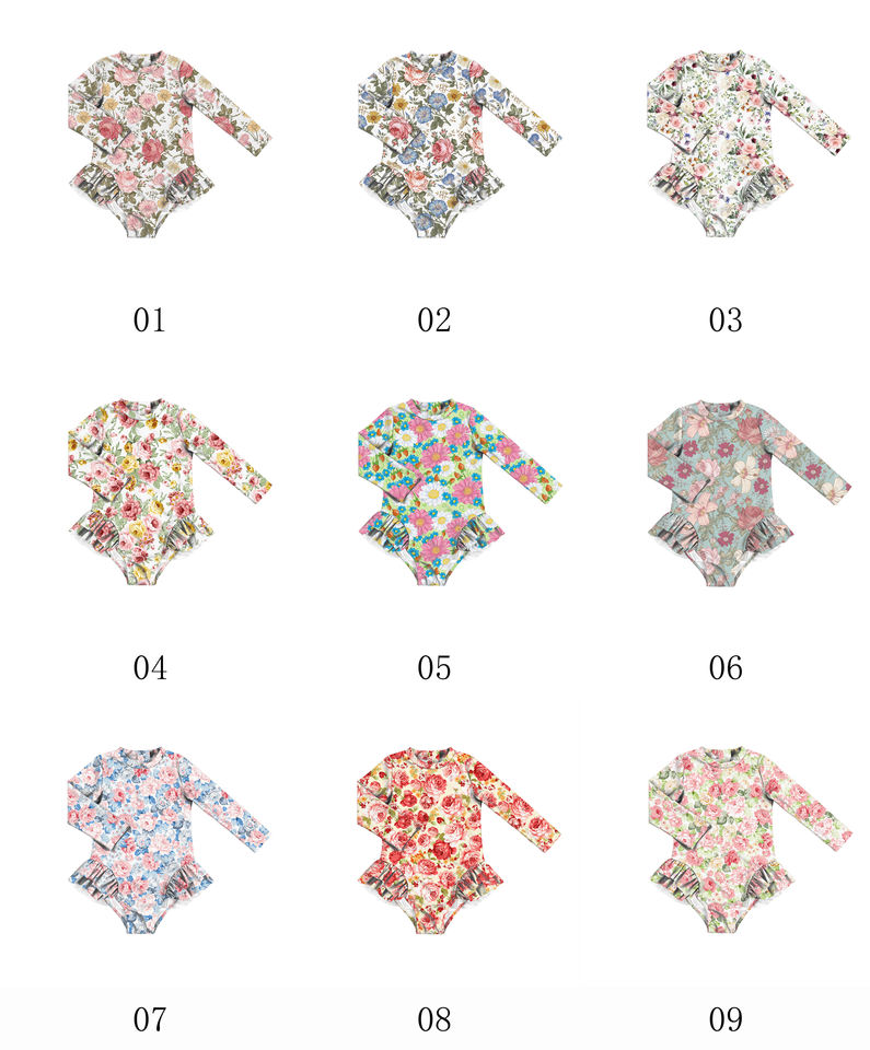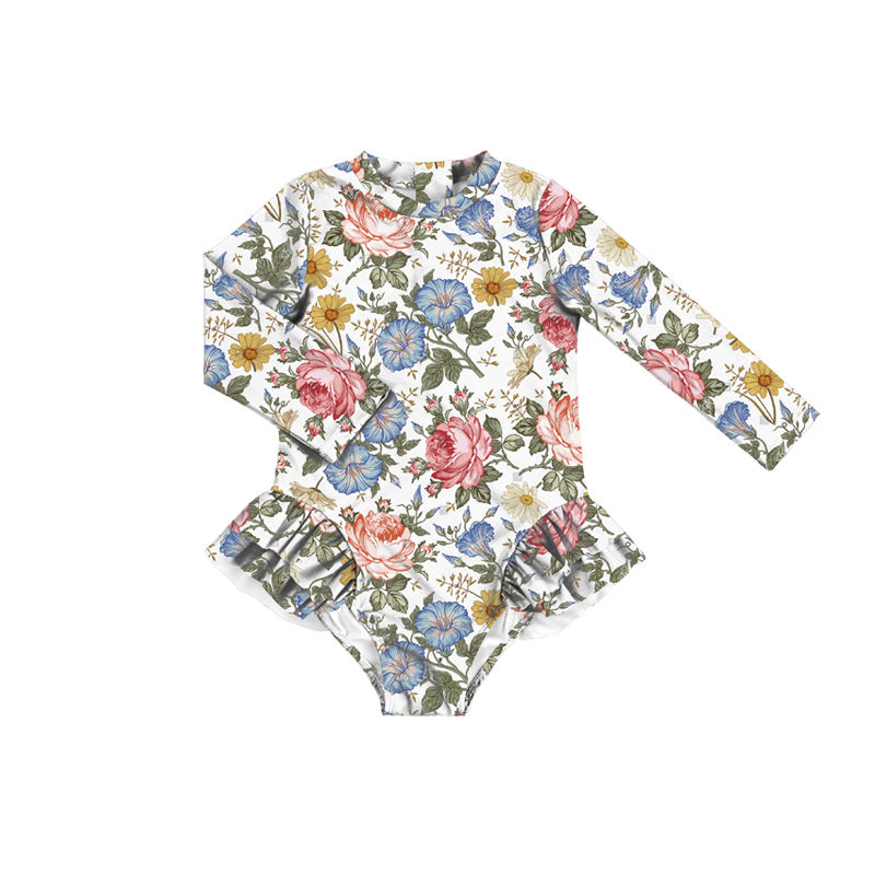 Maillots de bain floraux à volants pour bébés, nourrissons et tout-petits, maillots de bain à fermeture éclair pour filles, maillots de bain à manches longues pour petites filles
