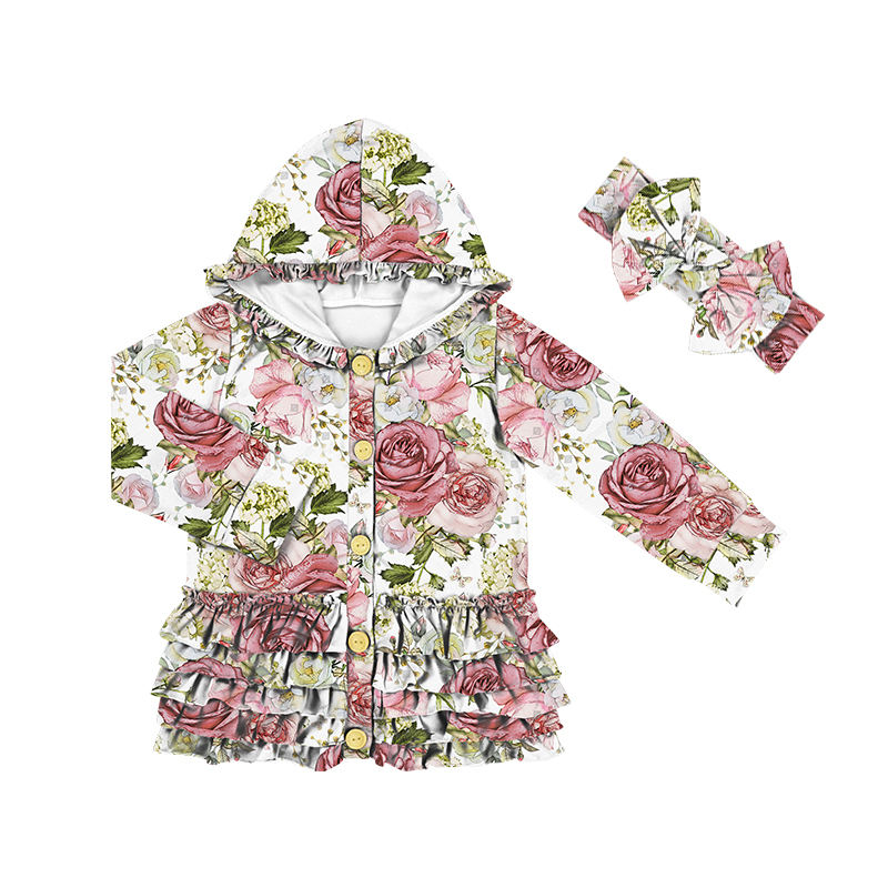 Manteaux pour bébés à volants adorables, vêtements d'extérieur pour filles avec bandeau, vestes à capuche boutonnées pour enfants, vêtements pour filles, vestes pour tout-petits, vente en gros