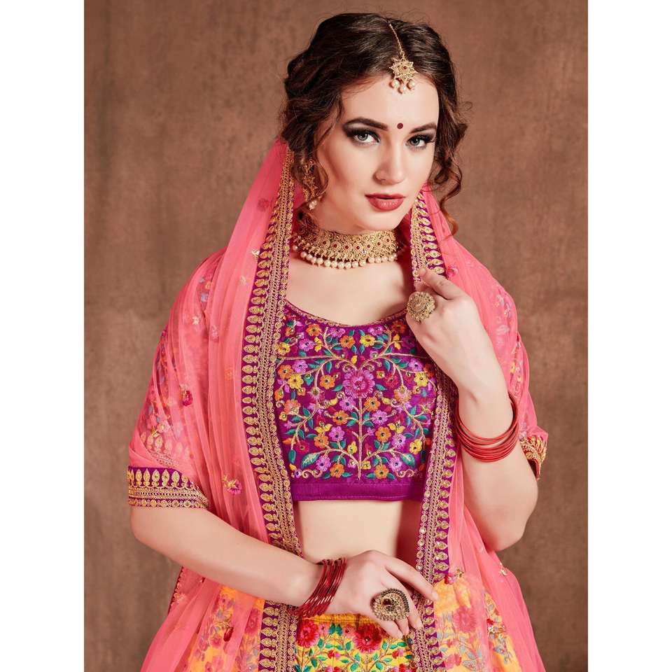 Lovely Yellow Colored Bridal Wear Embroidered Lehenga Choli