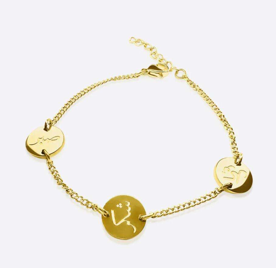 Loverher Bracelet Sabr, Shukr, Tawakkul Bracelet 18k Gold Plated Arabic Jewelry Wholesale More Designs in Stock Stainless Steel