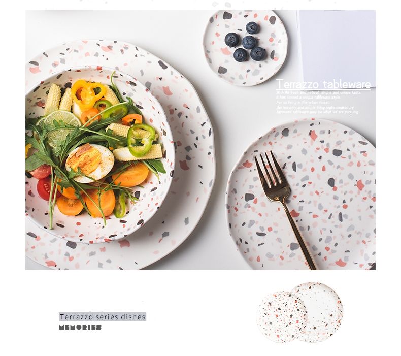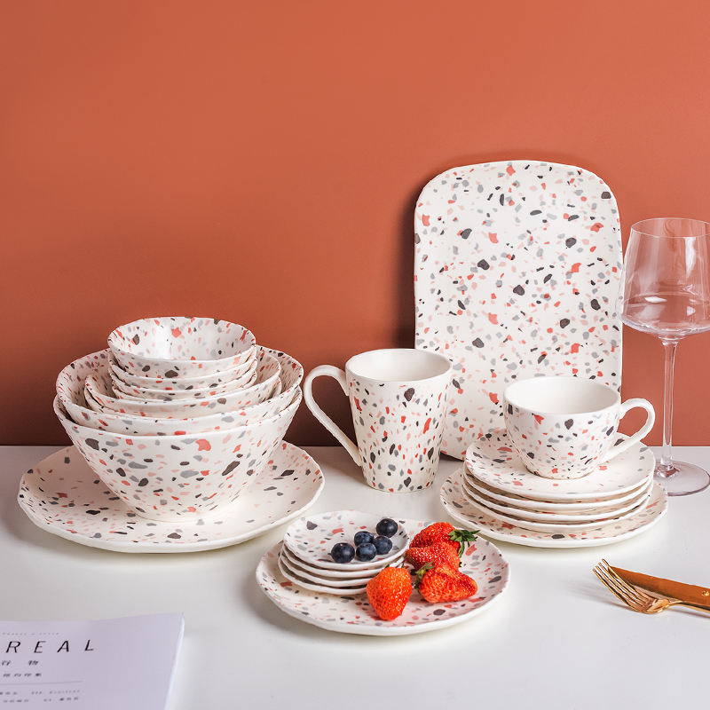 Ensemble d'assiettes à dîner en céramique à motif terrazzo LovingHome, vaisselle en porcelaine pour la maison, accessoires de table pour restaurant, décoration de salle à manger
