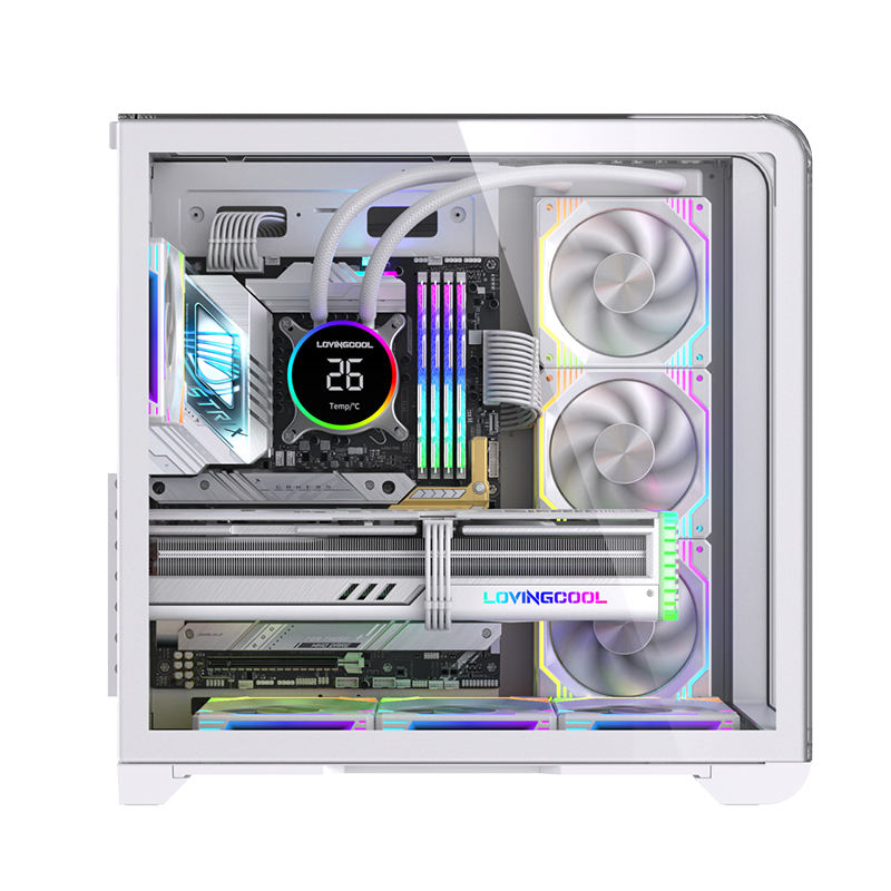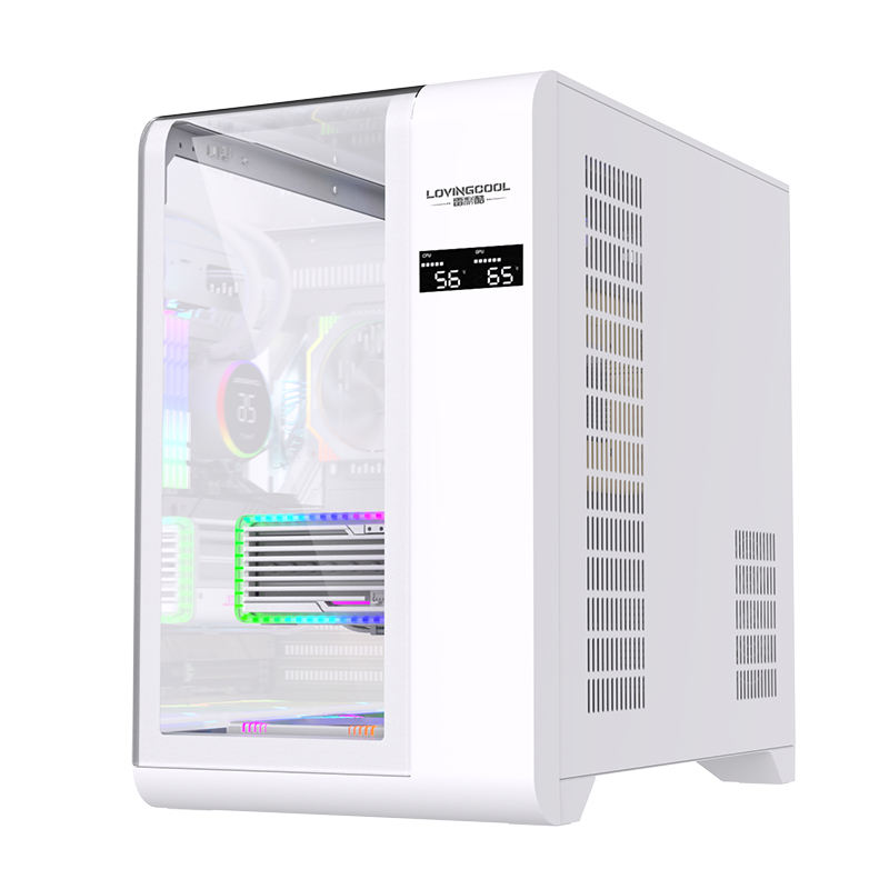 Lovingcool 2024 New Gaming Computer Mid Tower ATX Case White ATX Motherboard Towers Pc Cabinet Computer Case Desk with Screen