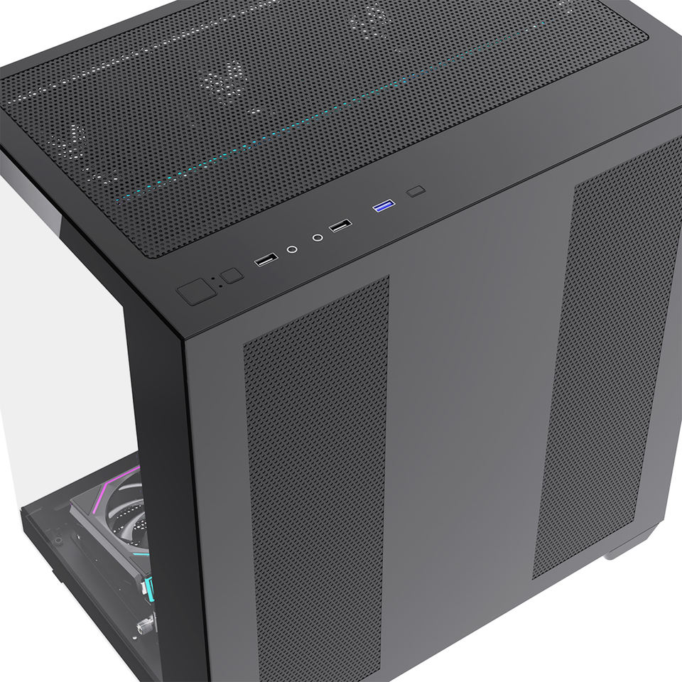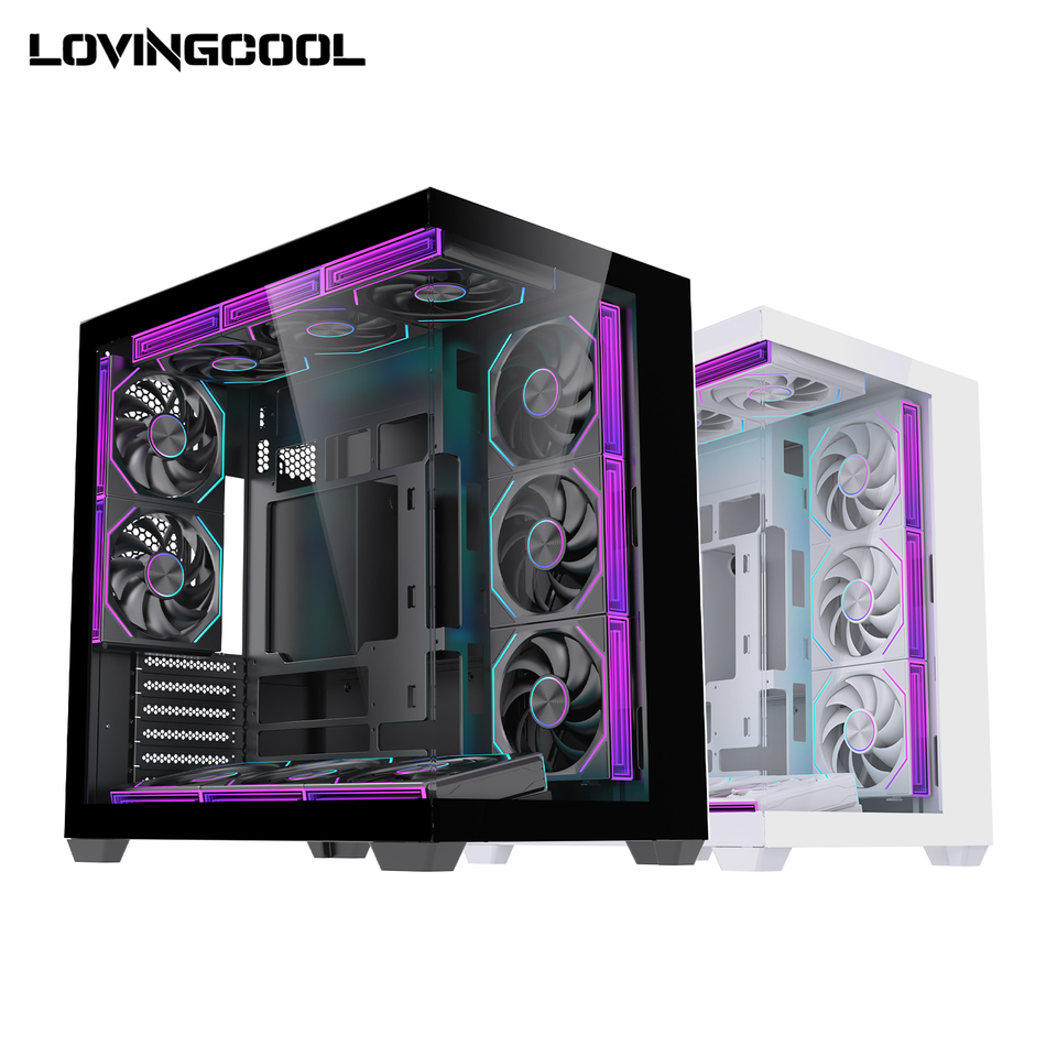 Boîtier de jeu Lovingcool Gaming ATX Full Tower avec vue panoramique, flux d'air élevé, plusieurs supports de ventilateurs et stockage HDD SSD pour les joueurs