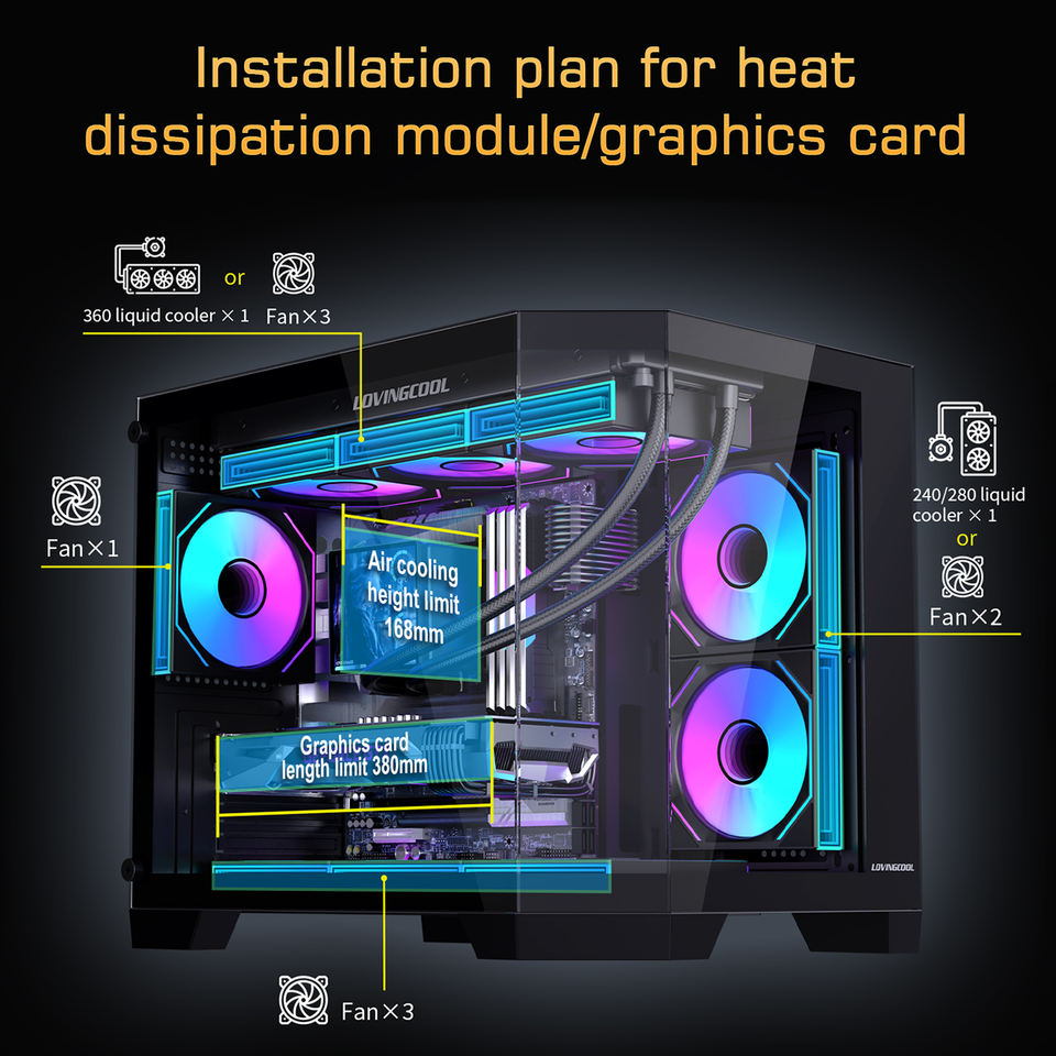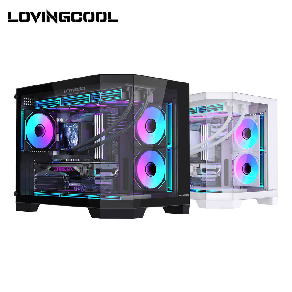 Boîtier PC MATX Lovingcool avec 3 panneaux en verre trempé, design panoramique, flux d'air élevé pour système de jeu, intégrateur, commande en gros