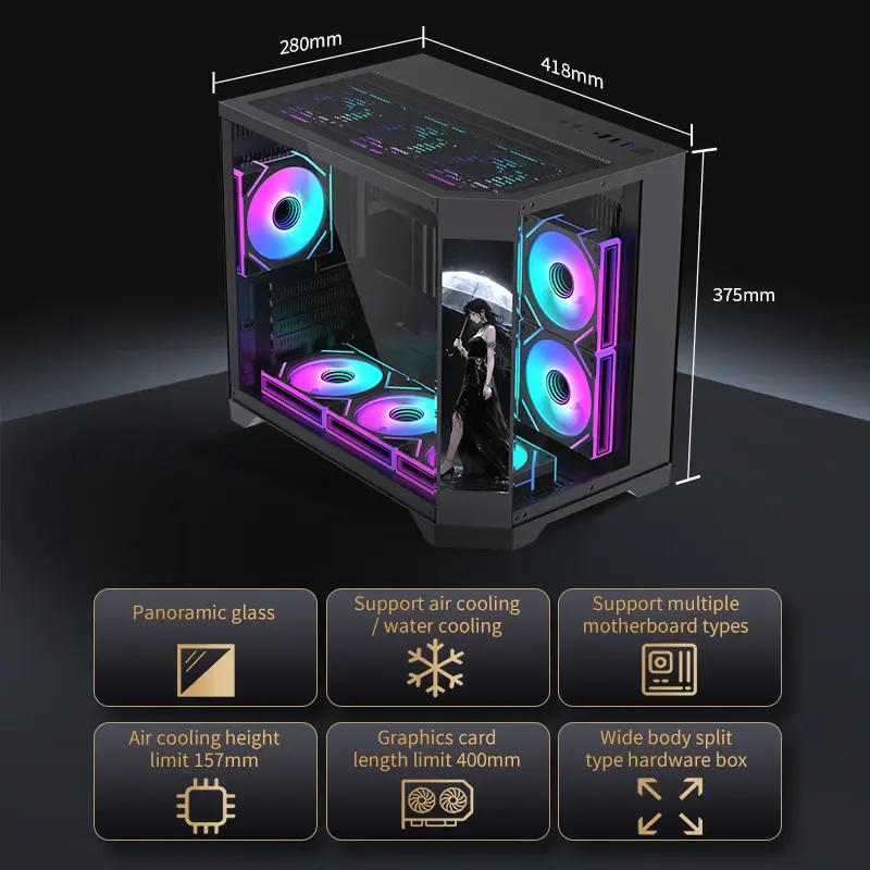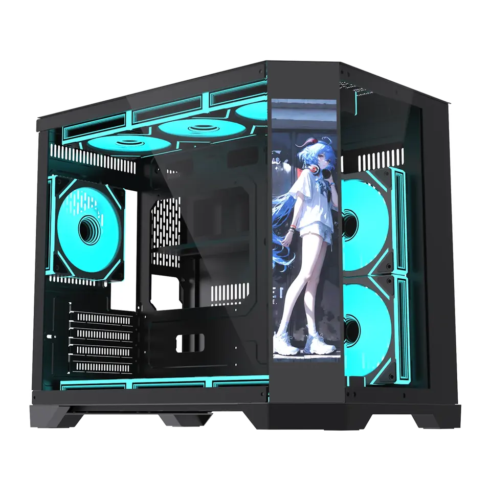 Boîtier PC en verre trempé Lovingcool avec écran LCD