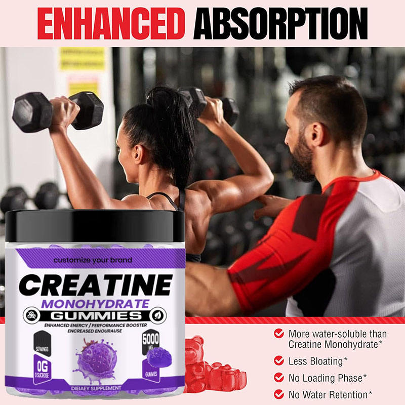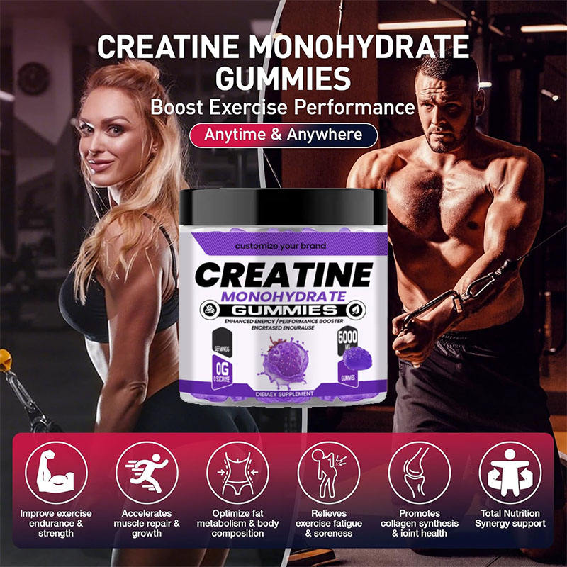 Créatine Monohydrate en Bonbons Gélifiés Faible en Calories, Végétarienne, Améliore la Concentration, la Force et l'Endurance des Adultes, Formule Résistante à la Fusion