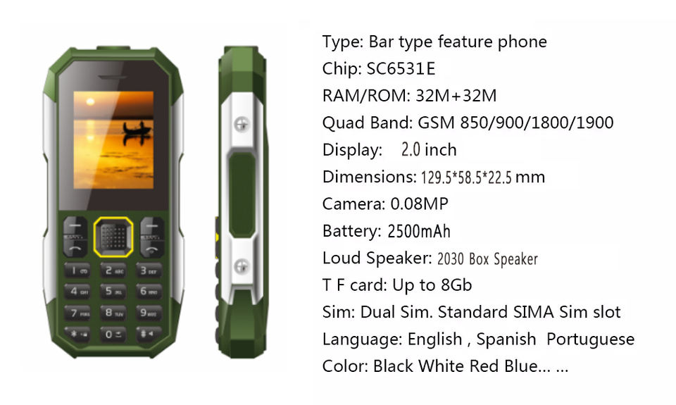Téléphone déverrouillé antichoc étanche à la poussière de 2.0 pouces à faible coût Top 10 des meilleurs téléphones robustes 2022 téléphones mobiles robustes