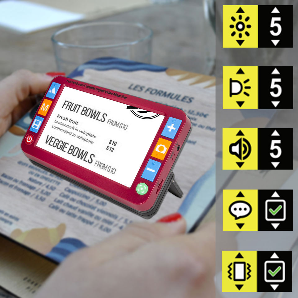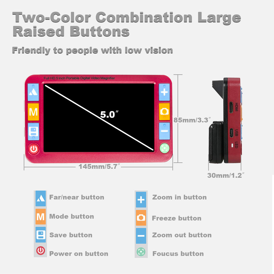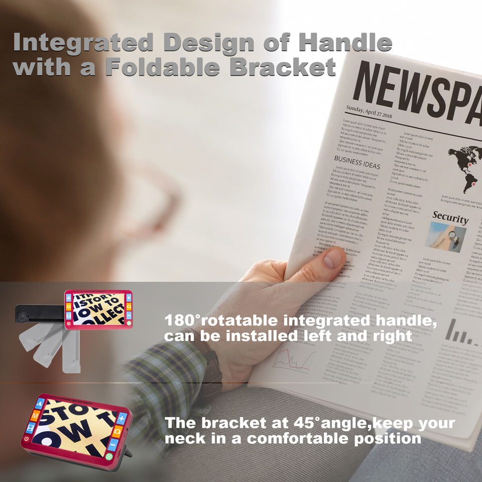 Loupe vidéo numérique en plastique à faible coût de 5 pouces pour malvoyants avec double objectif 8MP autofocus, commande vocale, zoom 2x~32x RS500XR