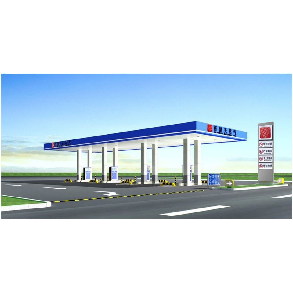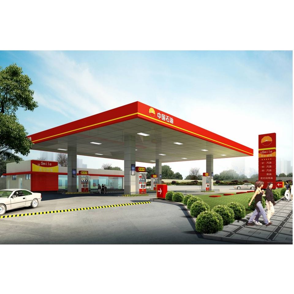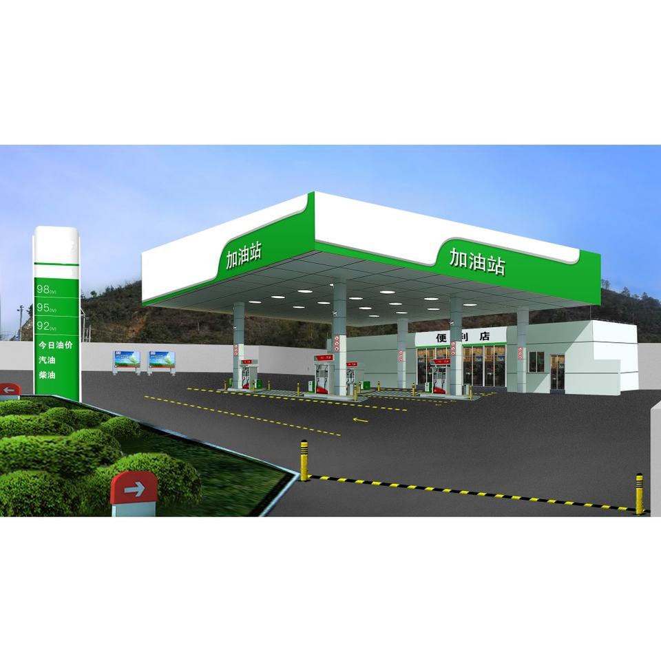 Structure en acier moderne personnalisée à faible coût, auvent de station-service, conception de station-service pétrolière, station-service à vendre
