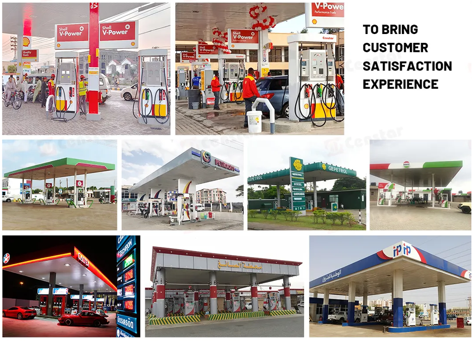 Structure en acier moderne personnalisée à faible coût, auvent de station-service, conception de station-service pétrolière, station-service à vendre