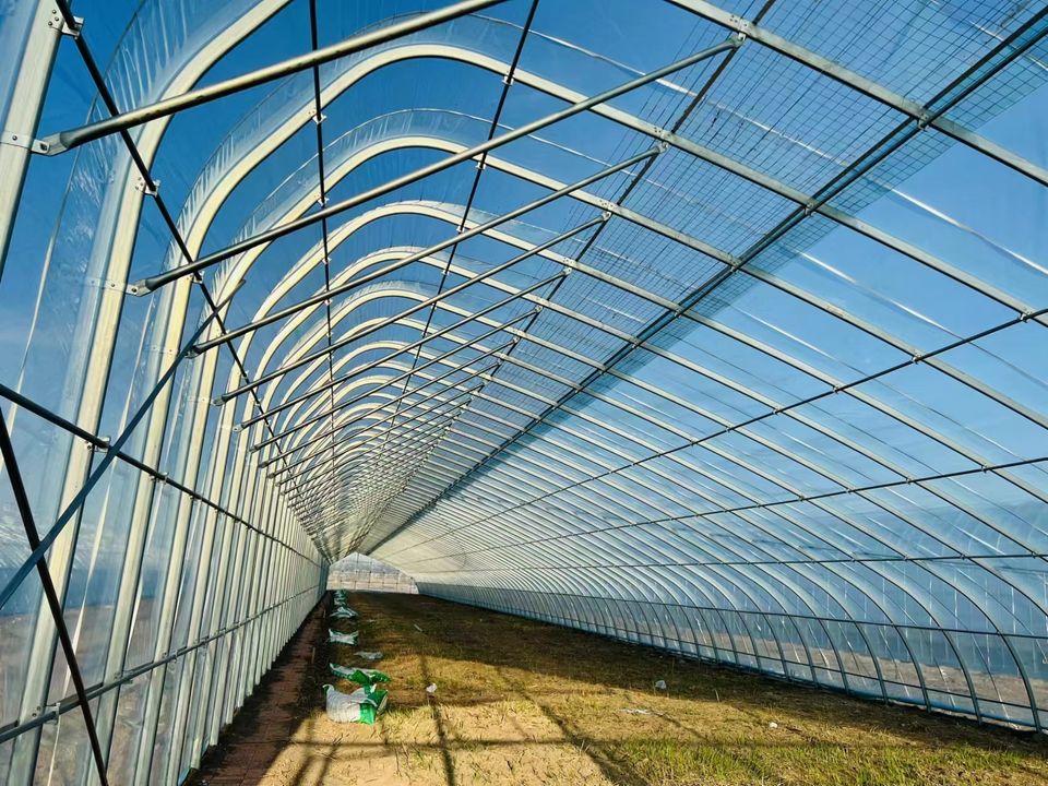 Cerceau à faible coût Structure en acier agricole Film plastique simple arc serre 8*30M hauteur 3M à vendre