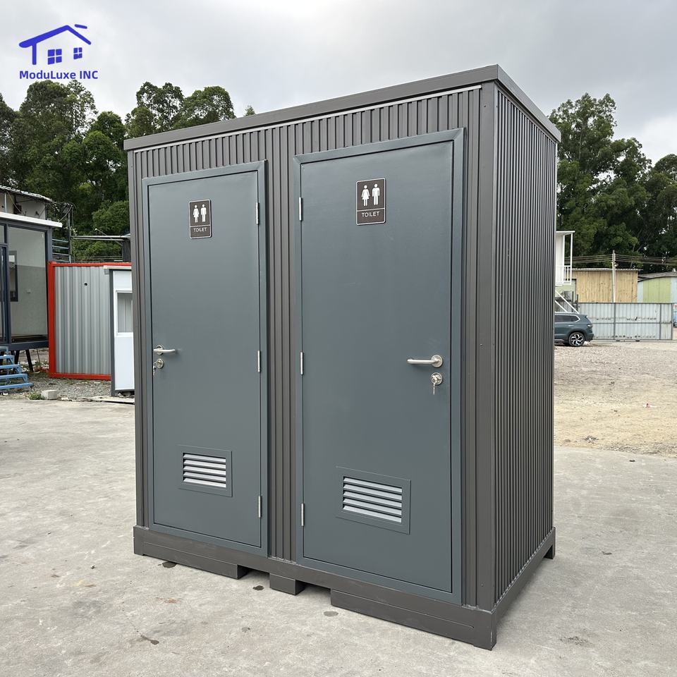 Toilettes mobiles à faible coût en panneaux sandwich, toilettes publiques extérieures en acier portables avec salle de douche