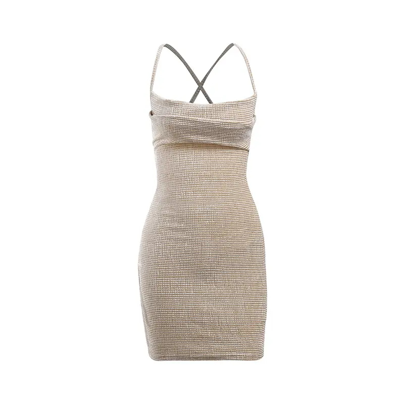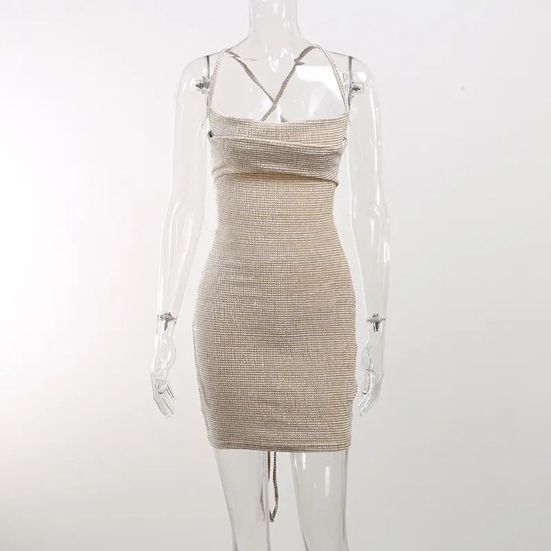 Coupe basse couleur unie dos nu fille épicée avec ceinture haute Sexy sans manches robe de fesses moulantes