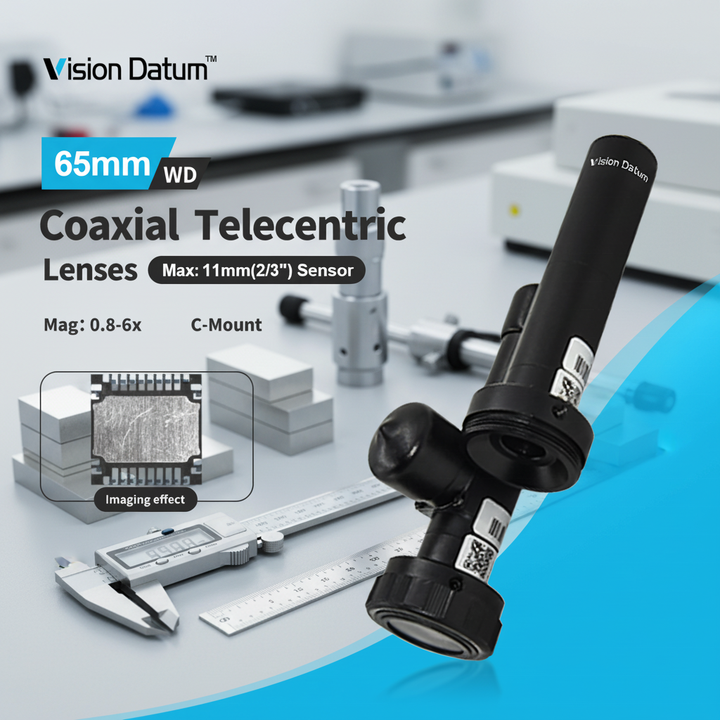 Objectif télécentrique à faible distorsion 2/3" WD 65 mm à monture C pour l'inspection de petites pièces