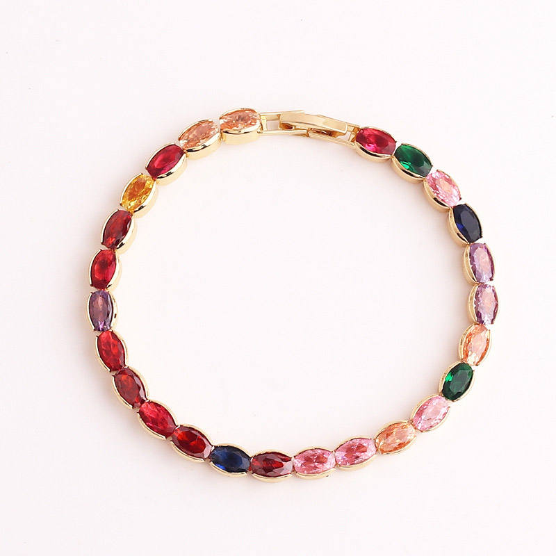 Bracelet chaîne tennis en zircon cubique coloré classique plaqué rhodium, vente en gros, MOQ faible (10 pièces), cadeau
