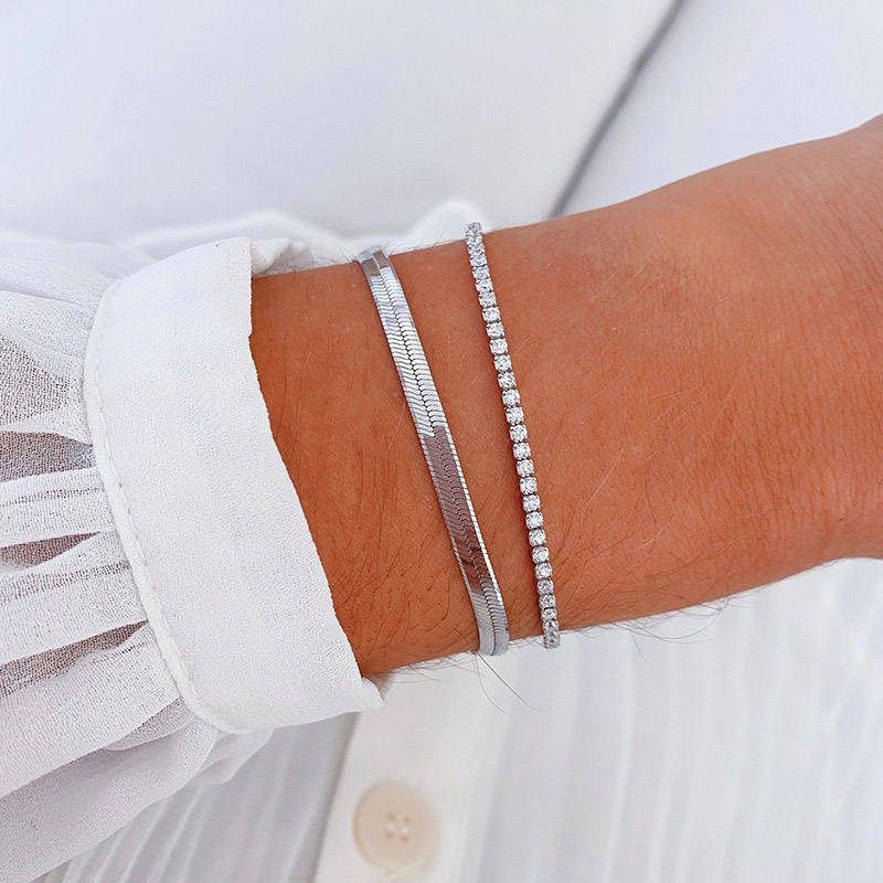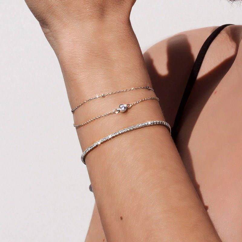 Low MOQ 10pcs Wholesale Women Hand 5A 925 Sterling Silver Princess Cut Zircon Tennis Bracelet 18k Gold Party Gift