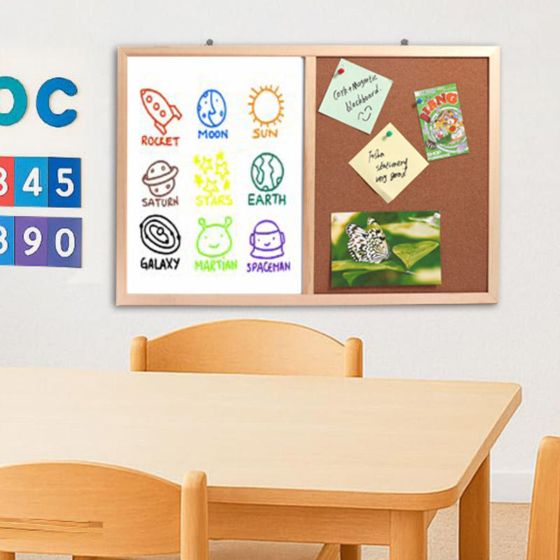 Tableau d'affichage combiné en liège et tableau blanc encadré en bois, double fonctionnalité, 16x24 pouces, faible MOQ, pour salle de classe, maison, école et bureau