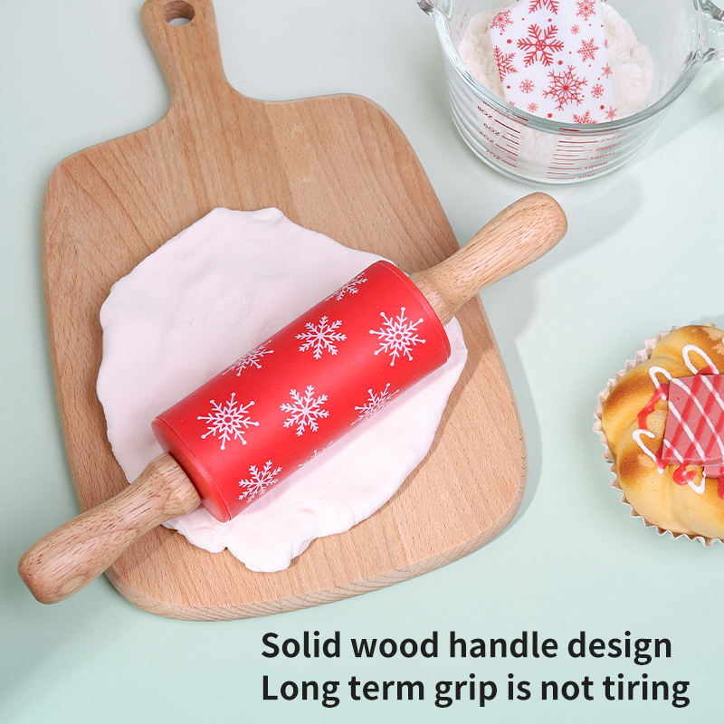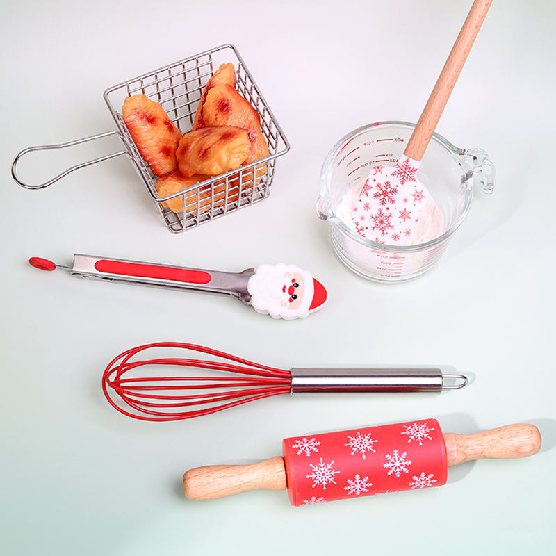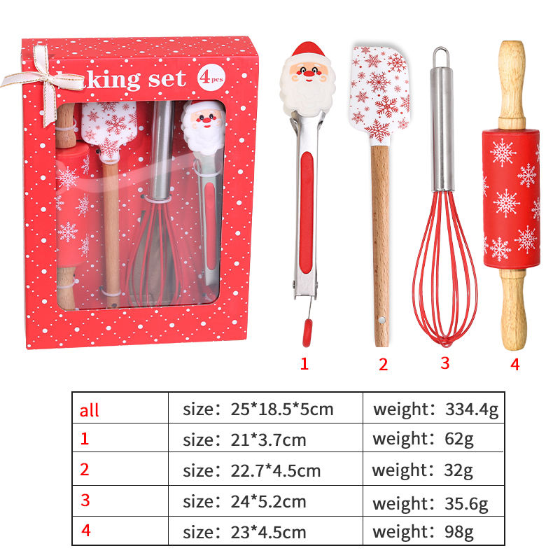 Ensemble d'outils de cuisson 4 pièces à quantité minimale de commande basse avec boîte-cadeau Spatule en silicone Emporte-pièce Rouleau à pâtisserie et fouet à oeufs Parfait pour Noël