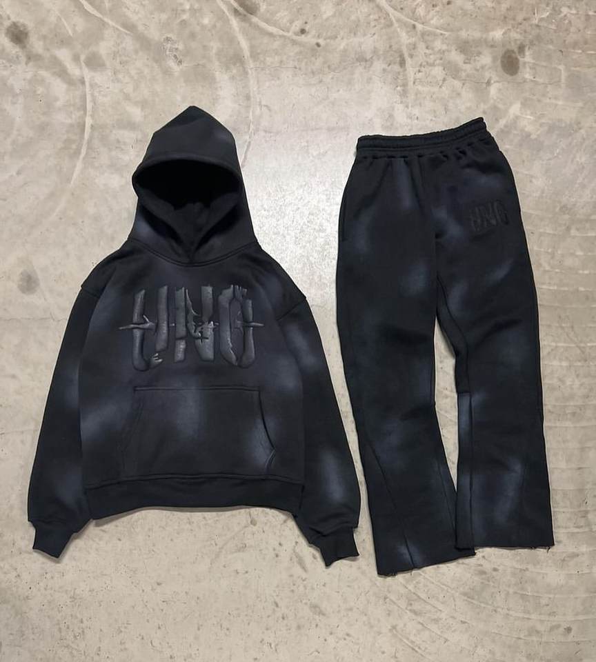 Low MOQ Adult Long Sleeve Sweat Suit Made in Pakistan 100% Cotton Sunfade Puff Print Design