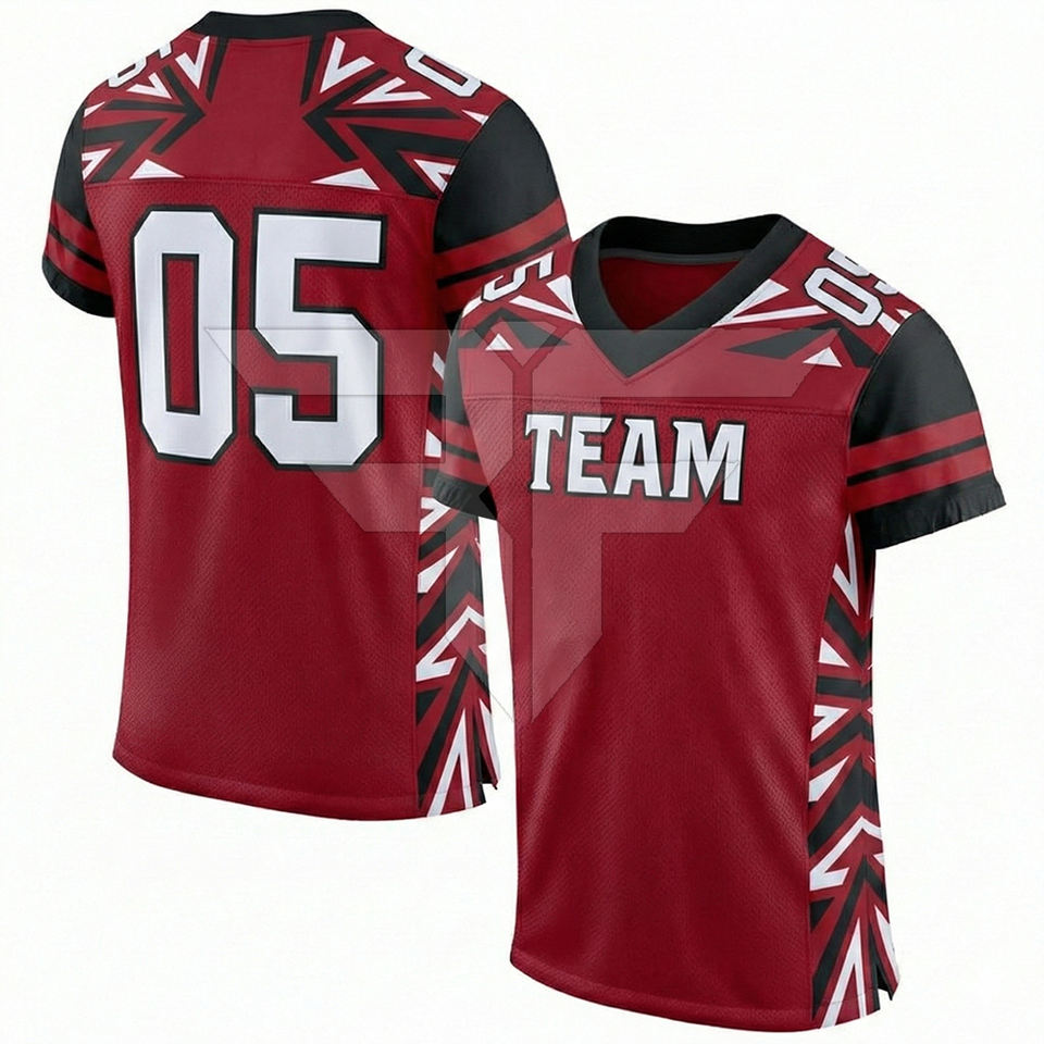 Maillot de football américain respirant à manches courtes avec logo personnalisé par transfert thermique, faible MOQ, vente en gros, sur mesure