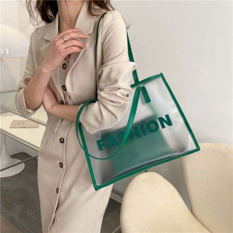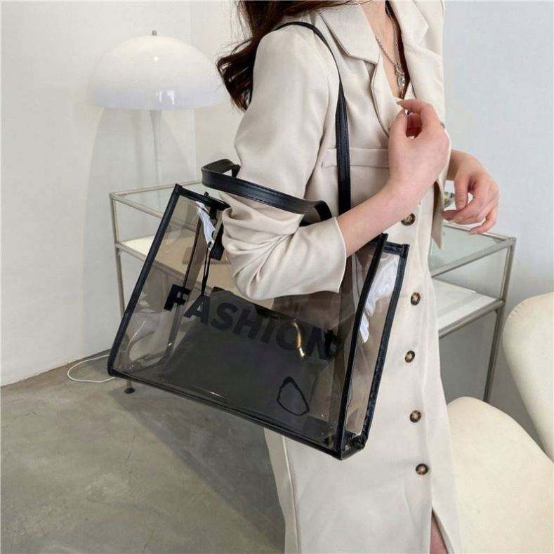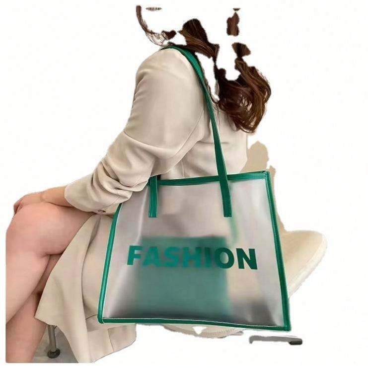 Sac fourre-tout de plage et de shopping en PVC transparent imperméable avec poignée en PU, grande capacité, logo personnalisé, faible MOQ