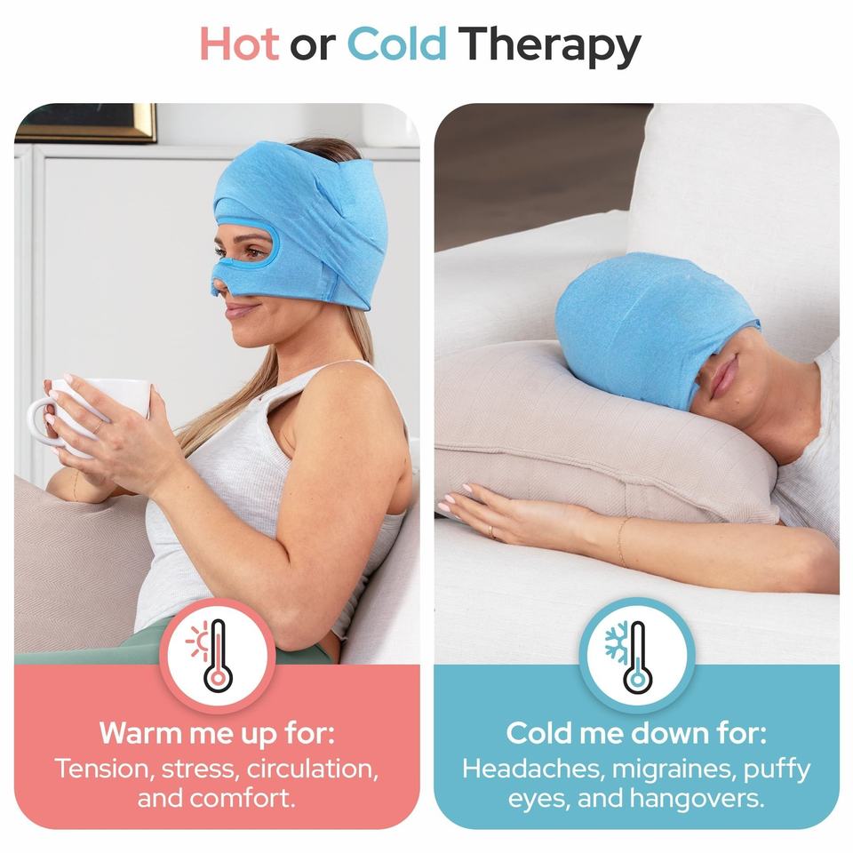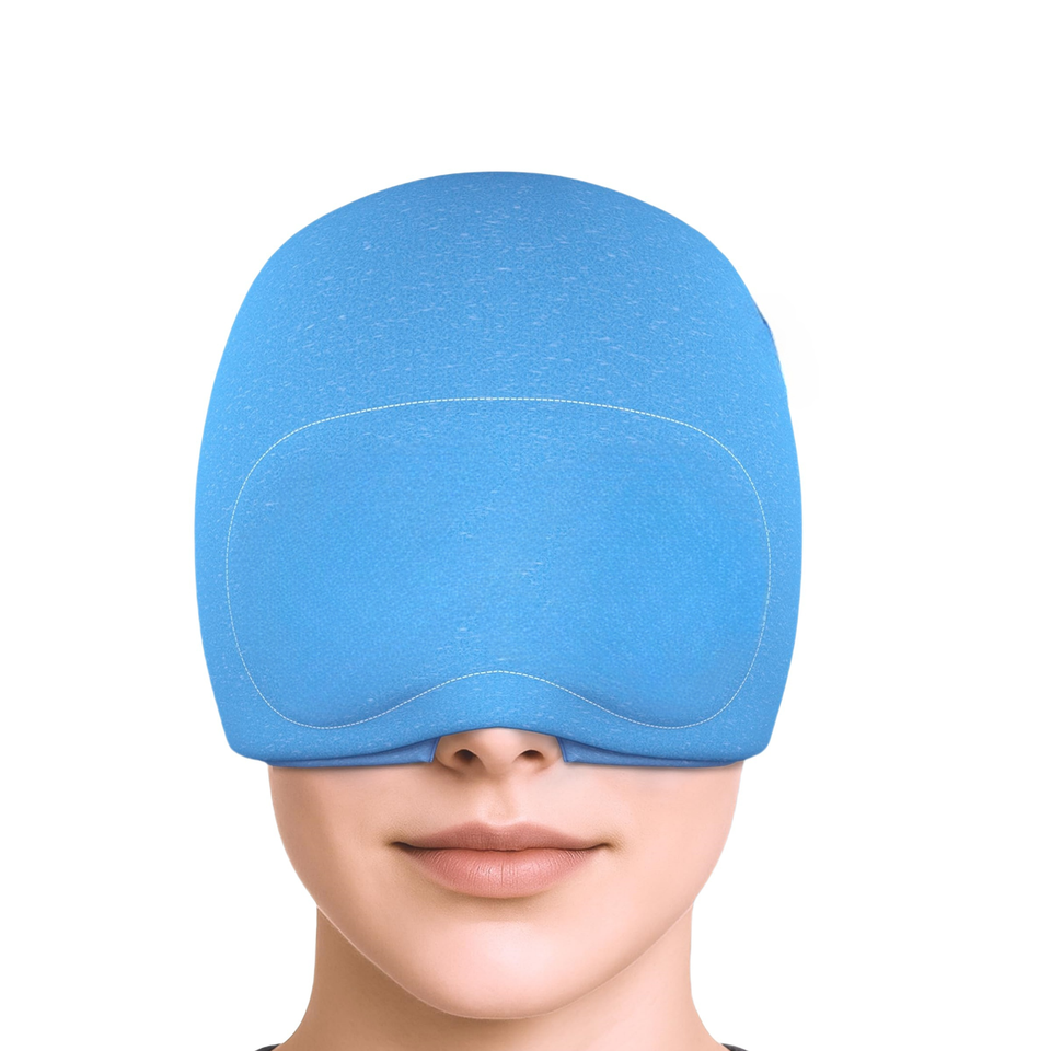 Masque pour les yeux coulissant personnalisé à faible MOQ - Soulagement naturel des maux de tête - 360 ° Chapeau de compression glacé anti-gueule de bois avec gel pour le stress