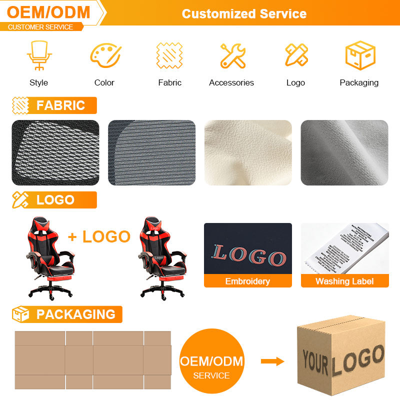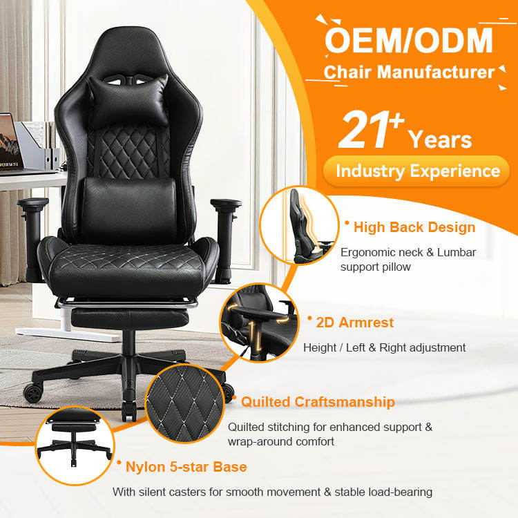 Chaise de jeu ergonomique à dossier haut en cuir PU personnalisable avec support lombaire et accoudoirs 2D, faible MOQ