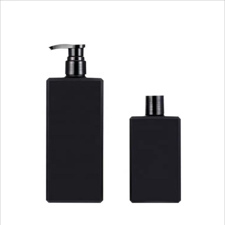 Faible MOQ, Haute Qualité, Bouteille Pompe en PET Noir 250ml 500ml pour Crème Visage, Lotion, Shampooing, Sérigraphiée