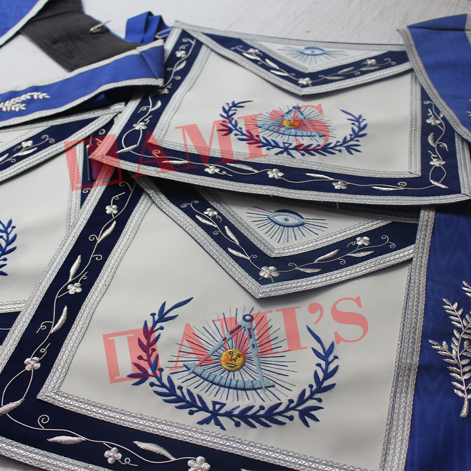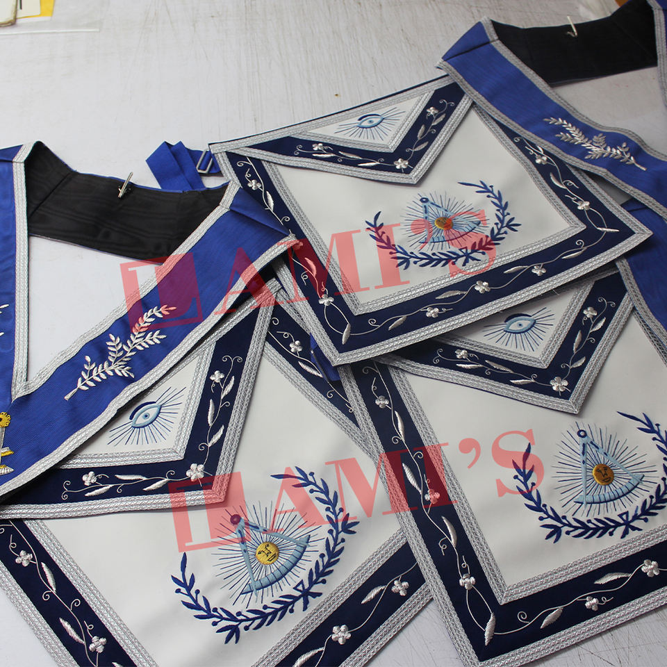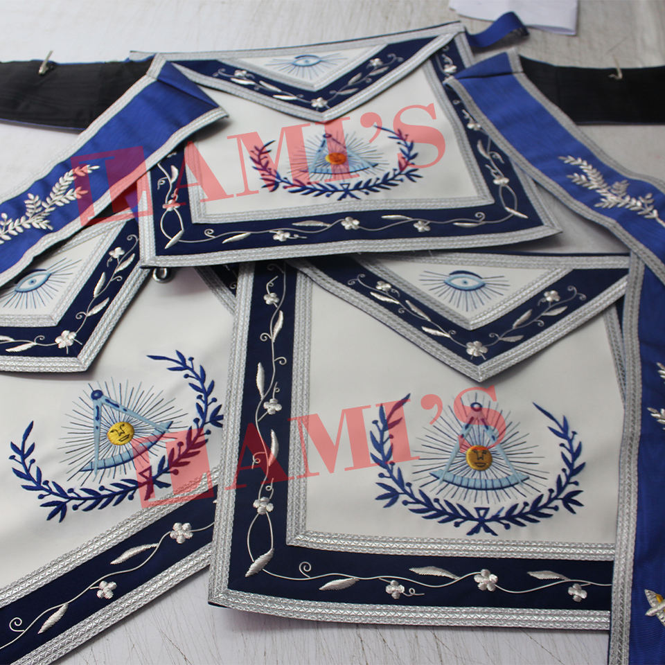 Low MOQ Past Masters Masonic Regalia Apron Embroidered Border Masonic 100% Lambskin Apron for Sale