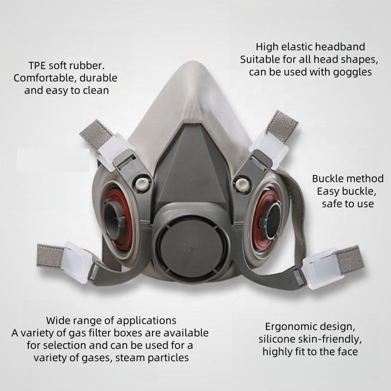 Masque en silicone réutilisable à faible MOQ avec double filtre respiratoire, semi-masque anti-poussière pour la peinture et le soudage