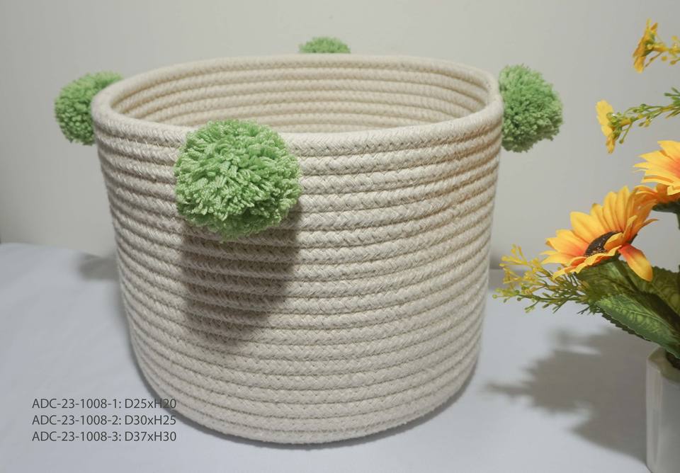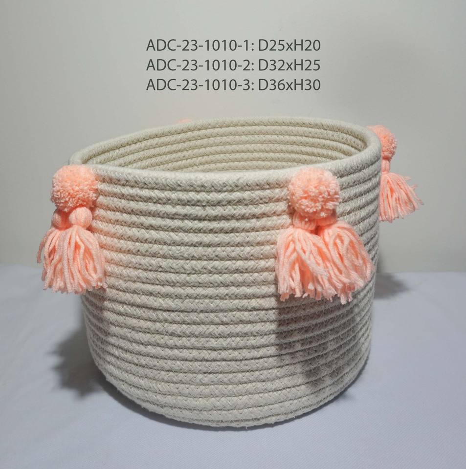 Panier de rangement bas quantité minimale de commande avec poignée Articles divers Collations Jouets Stockage ménager personnalisé Corde de coton à épissage rayé du Vietnam