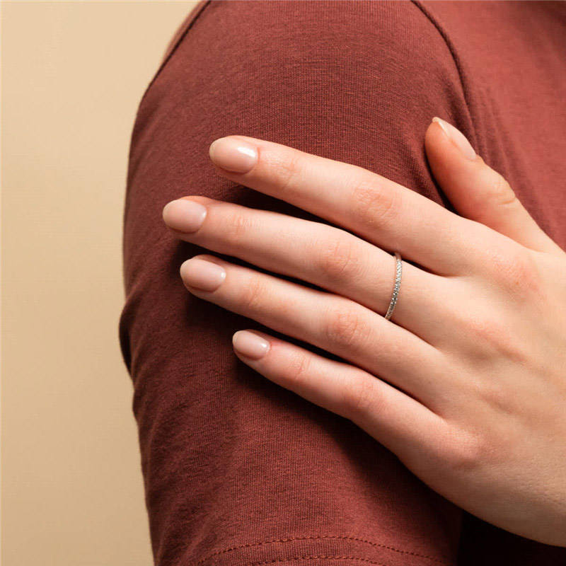 Low MOQ Wholesale Zircon Jewelry Trendy Women 925 Sterling Silver Cocktail Eternity Ring Channel Setting