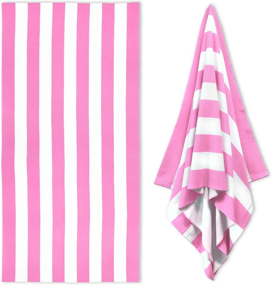 Serviette de plage surdimensionnée en microfibre à faible quantité minimale de commande, serviette de piscine rayée rose à séchage rapide, serviette de bain pour cabine