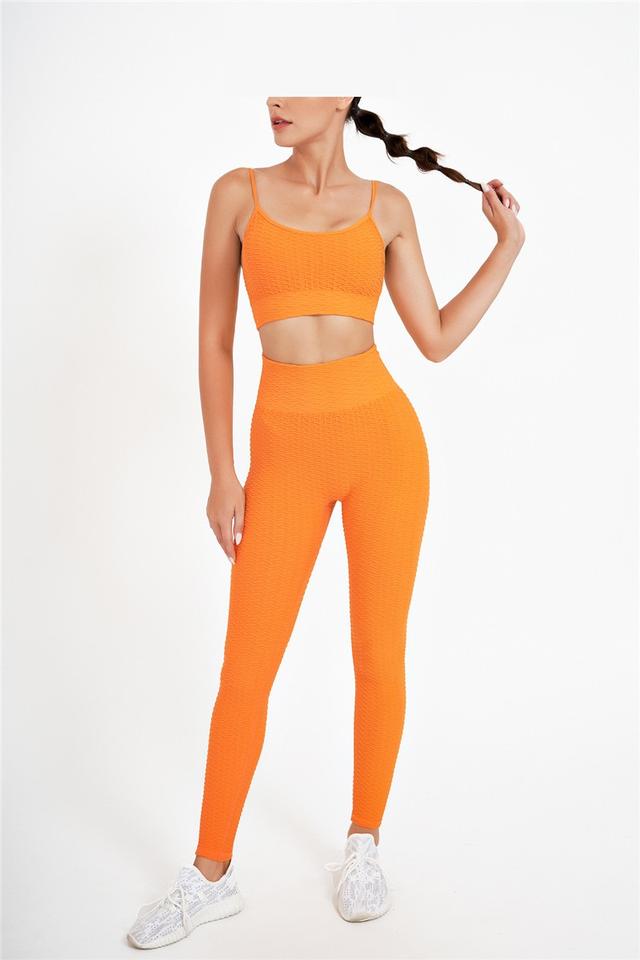 Ensemble de sport personnalisé à faible MOQ avec logo, en tissu extensible respirant 100 % polyester, comprenant un soutien-gorge de sport taille haute et un legging imprimé sur mesure