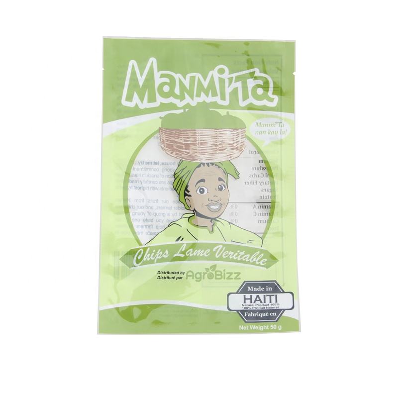 Sachets d'emballage vides de collation de puce de banane imprimés par coutume à bas quantité minimale de commande 3 sac thermoscellable en plastique de joint latéral