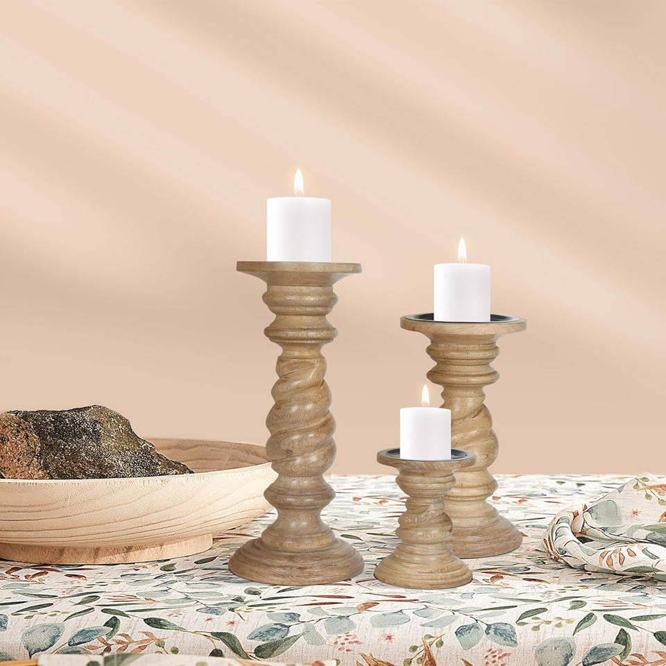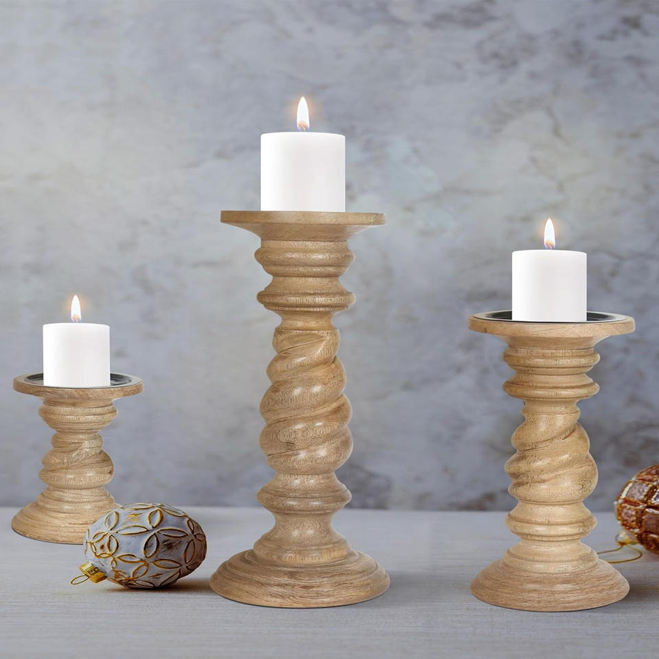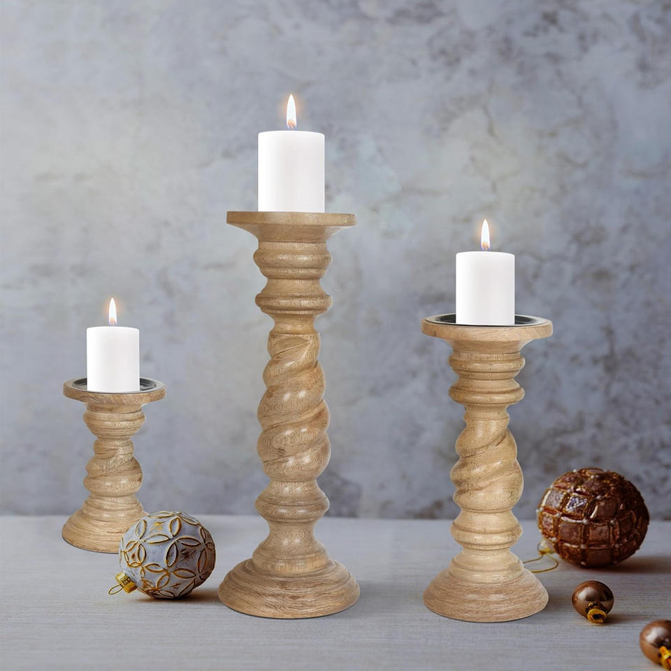Nom du produit:Lot de 3 bougeoirs en bois