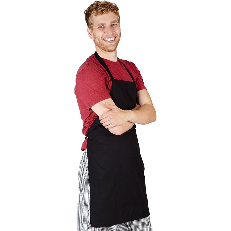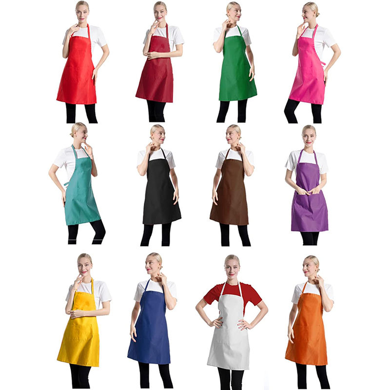Tablier de cuisine en polyester et coton, personnalisable, pas cher, en gros, faible MOQ, avec deux poches et logo
