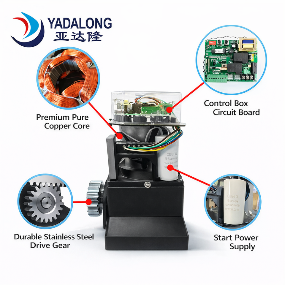 Moteur de portail automatique à faible bruit, tension de sécurité DC24V, 1000KG, démarrage et arrêt progressifs, installation facile pour porte métallique extérieure