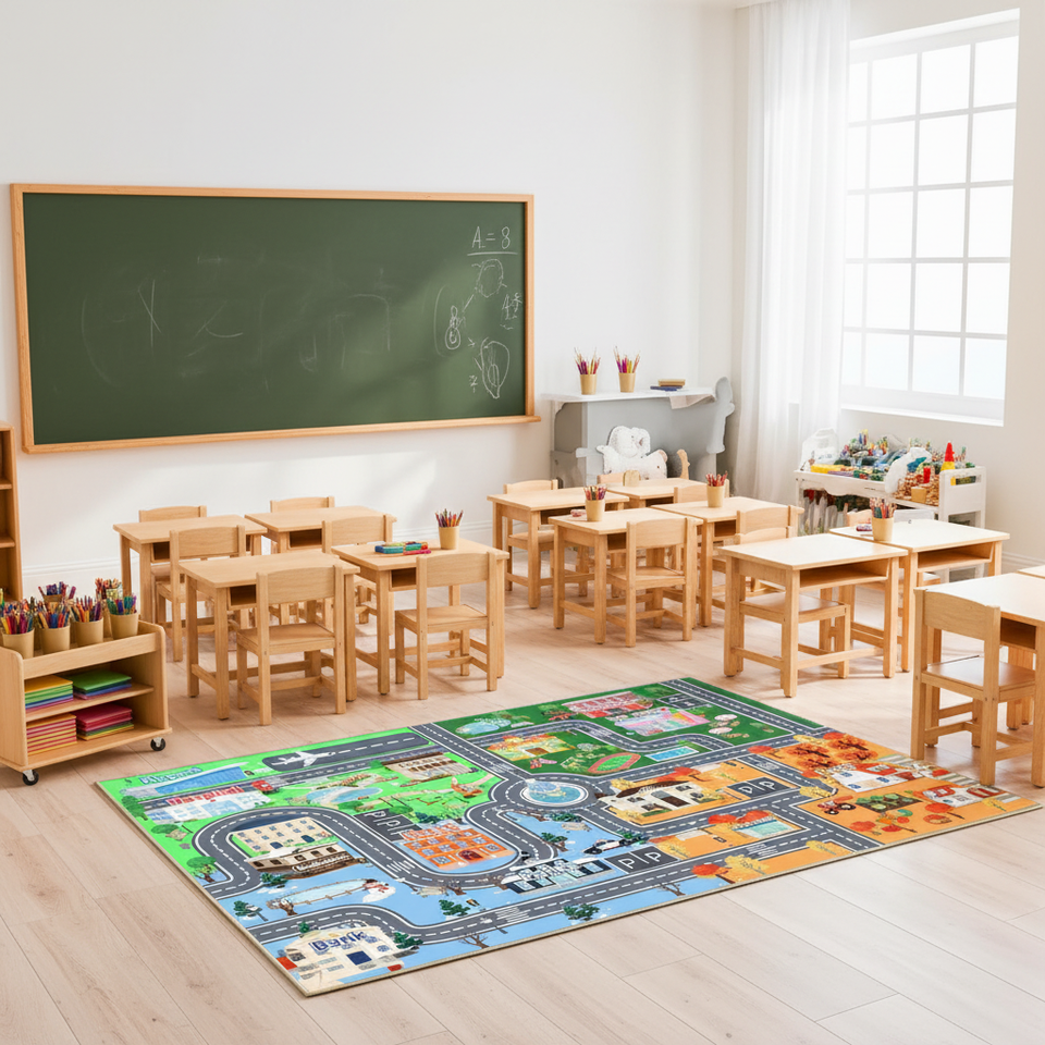 Tapis de jeu pour enfants à poils courts, thème voitures, 7'x9', ville/circuit/route, avec dos antidérapant, lavable, toutes saisons