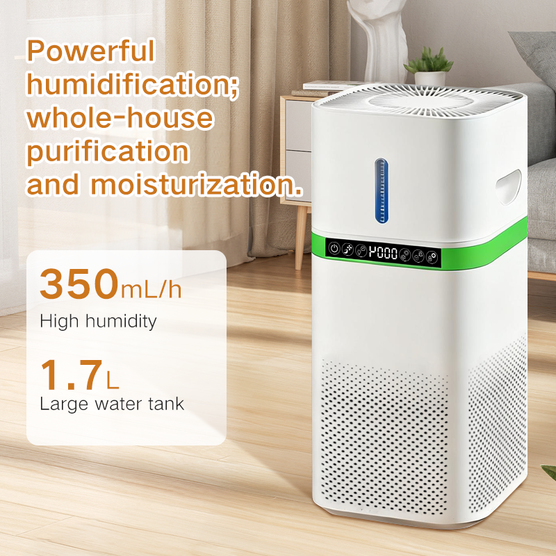 Purificateur d'air et humidificateur à filtre HEPA à faible consommation d'énergie, commandé par application, fonctionnement silencieux et économe en énergie pour la maison et l'intérieur