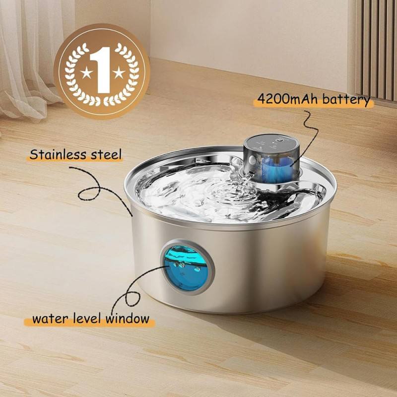Fontaine à eau portable sans fil 3,2 L à piles, 3 modes de distribution, minuterie automatique, en acier inoxydable et plastique, pour animaux de compagnie (chats) - Prix bas
