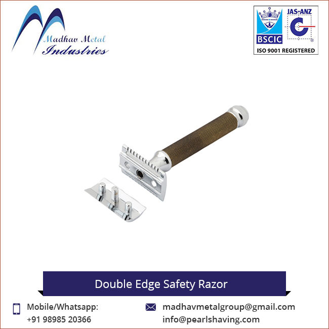 Rasoir de sécurité à double tranchant en laiton Madhav personnalisé, à prix réduit pour la vente en gros, idéal pour le nettoyage de la barbe masculine, populaire et le plus vendu