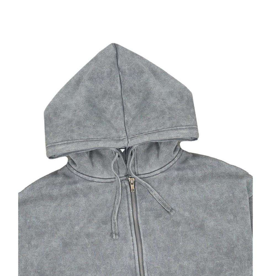 Survêtements pour hommes à fermeture éclair, lavage à l'acide, personnalisés, prix bas, vêtements unis, 100% coton, molleton français, survêtements pour hommes à épaules tombantes avec fermeture éclair