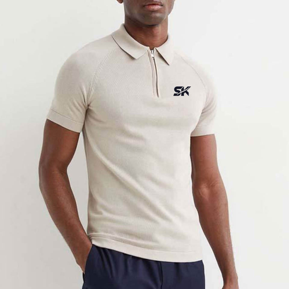 Product name:Zip Up Plain Polo Shirt