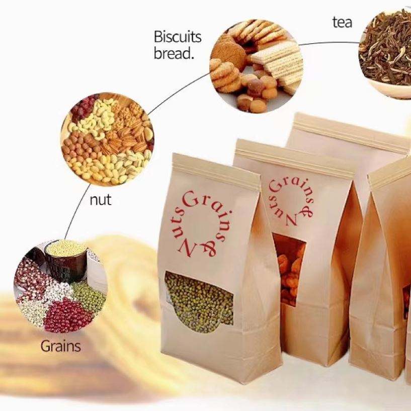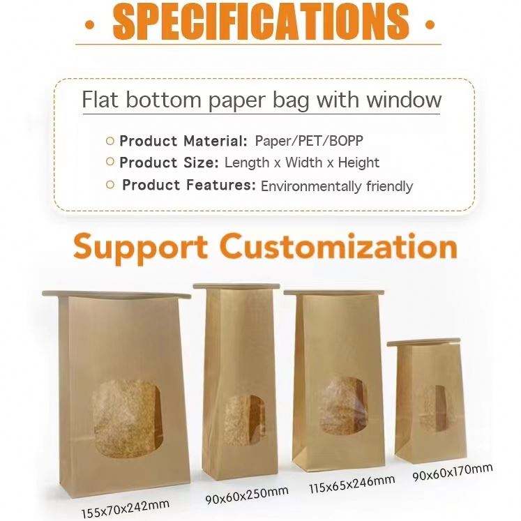 Nom:Sacs à café en papier kraft à fond plat avec fenêtre transparente