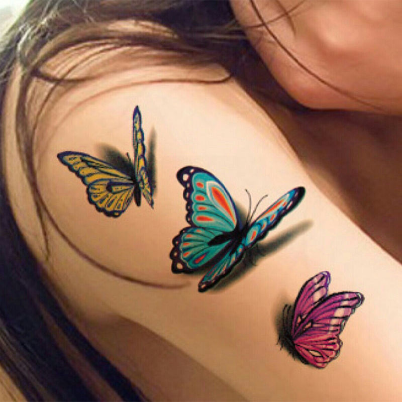 Autocollant de tatouage temporaire 3D pour fille, autocollant personnalisé imperméable pour visage, fleur papillon, sur le corps, bas prix d'usine, vente en gros